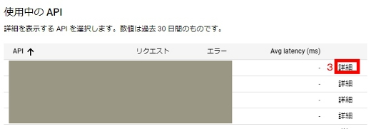「プロジェクトの選択」>「API」>使用中の APIの「詳細」をクリック>「認証情報」をクリック